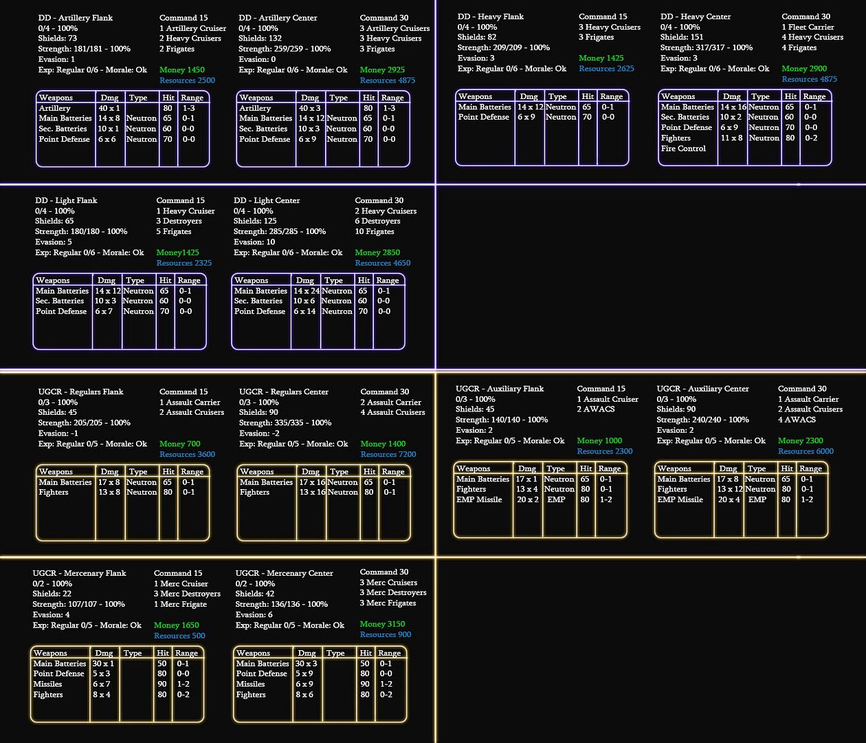 Special note for the UGC; You can't mix Mercenary vessels with those of the UGCR. (You can of course have your fleet be a mix of mercenary and regular fleet types)
