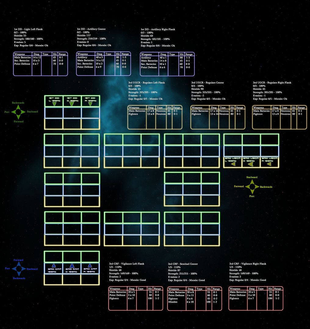 1st UGCR refitted at Capital, repaired 73% to Center fleet, 47% to Right flank